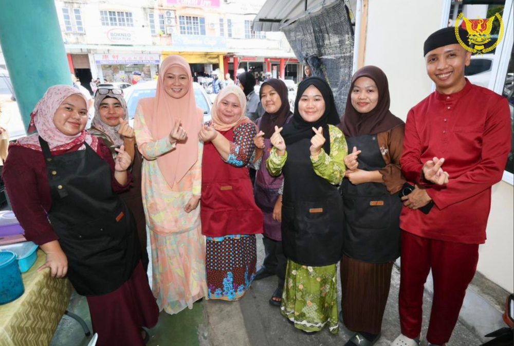 Sebelum berangkat, Tun Wan Junaidi dan Toh Puan Fauziah turut merakam gambar kenangan bersama tetamu dan kakitangan restoran serta menzahirkan penghargaan kepada pemilik restoran atas sajian yang enak dan layanan mesra sepanjang sesi minum pagi berlangsung.