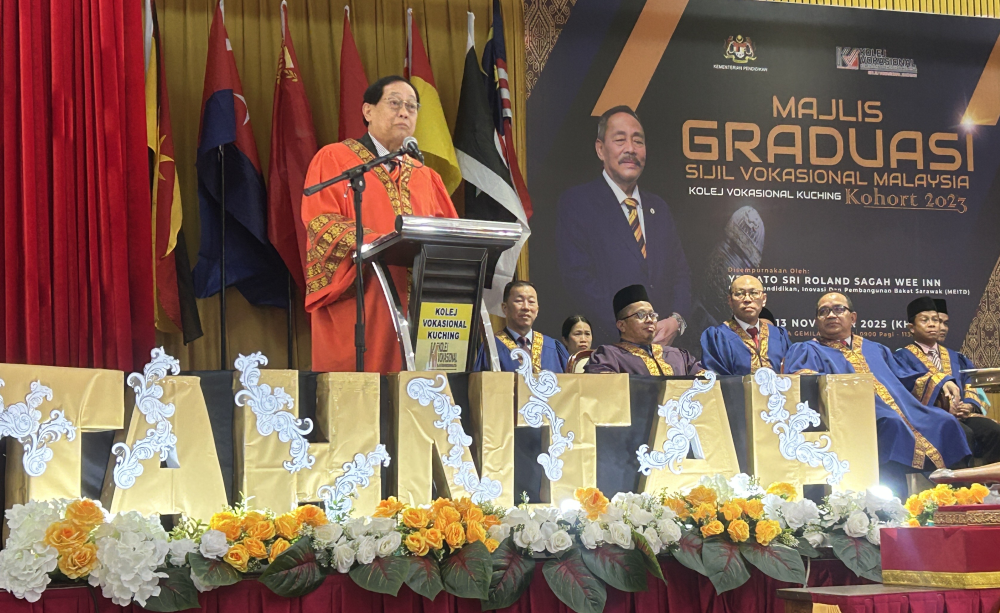 Teks ucapan beliau dibacakan oleh Timbalan Menteri Pendidikan, Inovasi dan Pembangunan Bakat, Datuk Francis Harden Hollis pada majlis Graduasi Sijil Vokasional Malaysia Kohort 2023 Peringkat Kolej Vokasional Kuching di sini, hari ini.