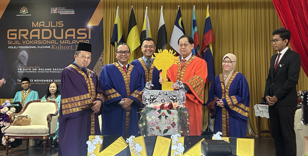 SERAMAI 171 graduan Kolej Vokasional Kuching, Kohort 2023 menerima Sijil Vokasional Malaysia masing-masing dalam satu majlis graduasi yang berlangsung penuh meriah