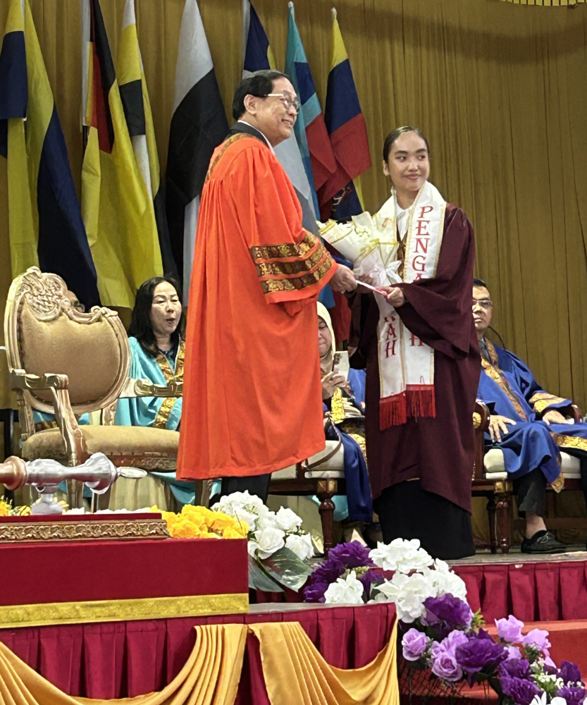 TAHNIAH…Gracesheildis Fara Addylin menerima Anugerah Khas Pengarah (Program Perakaunan) pada Majlis Graduasi Kolej Vokasional Kuching.
