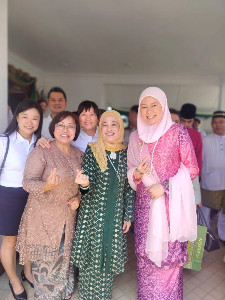 SILATULRAHIM.. Pengurus Besar Utusan Sarawak, Ivy Ngo (dua dari kiri) bergambar bersama Toh Puan Fauziah dan Datin Sri Raesah.