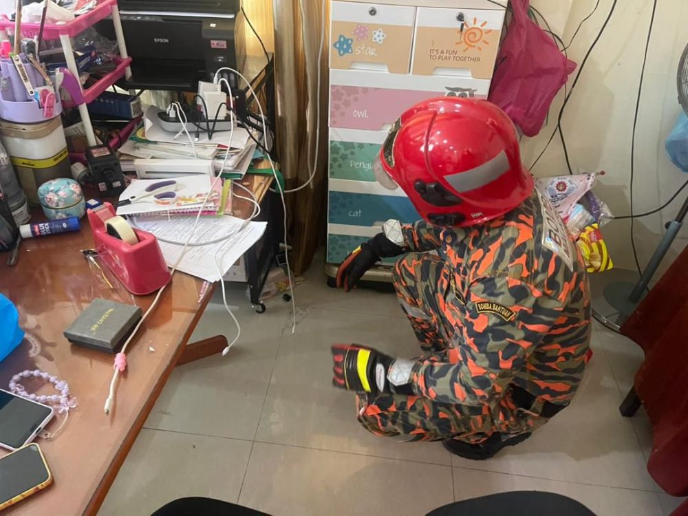 “Respons dengan panggilan kecemasan, tiga anggota bomba yang diketuai oleh Pegawai Bomba Kanan (PBK) I Haron Jenai bergegas ke lokasi.