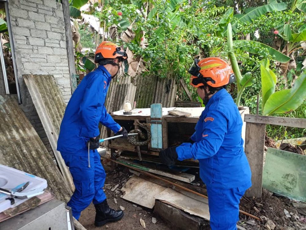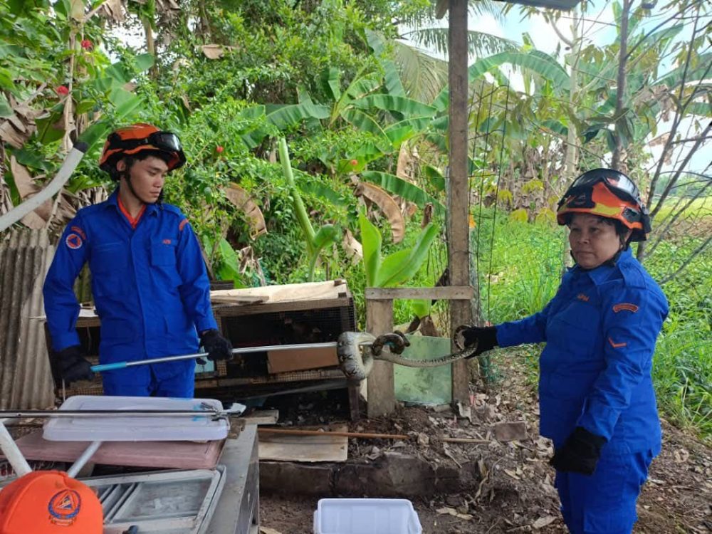 Setibanya di lokasi, pasukan penyelamat mendapati seekor ular sawa batik masih berada di dalam reban tersebut.