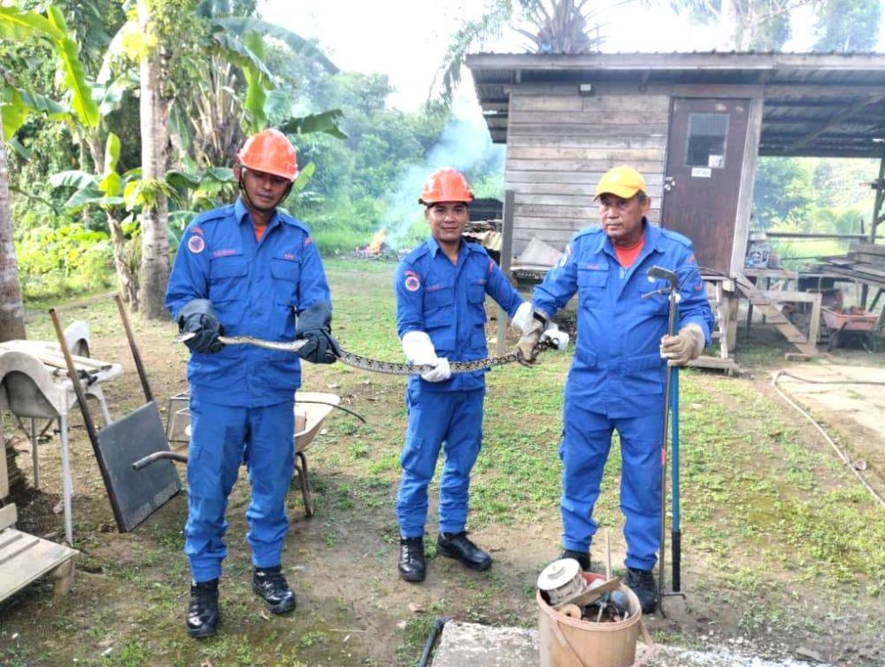 MARUDI: Pusat Kawalan Operasi Daerah (PKOD) Marudi menerima panggilan kecemasan daripada orang awam pada 4.20 petang semalam memohon bantuan untuk menangkap seekor ular di Kampung Baru Marudi.