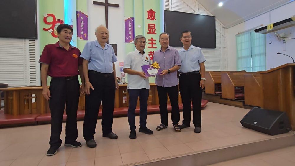 TERIMA KASIH….Dr Annuar menyerahkan bantuan daripada UNIFOR kepada Gereja Methodist Chiew Choo, hari ini.