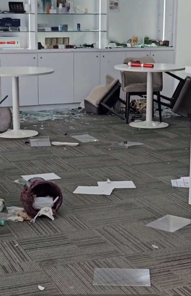 THE office in a mess after a disgruntled customers wreck the place.