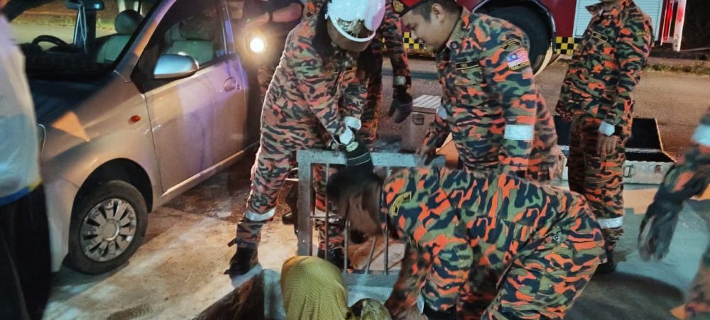 Wanita alami detik cemas selepas kaki tersepit di celah besi penutup longkang