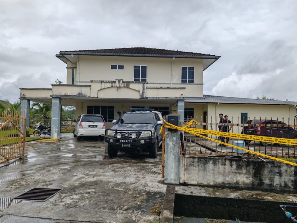 SUASANA di luar rumah pasangan yang ditemukan maut di Jalan Brayun, Sri Aman pagi tadi. Foto Adi Safarman