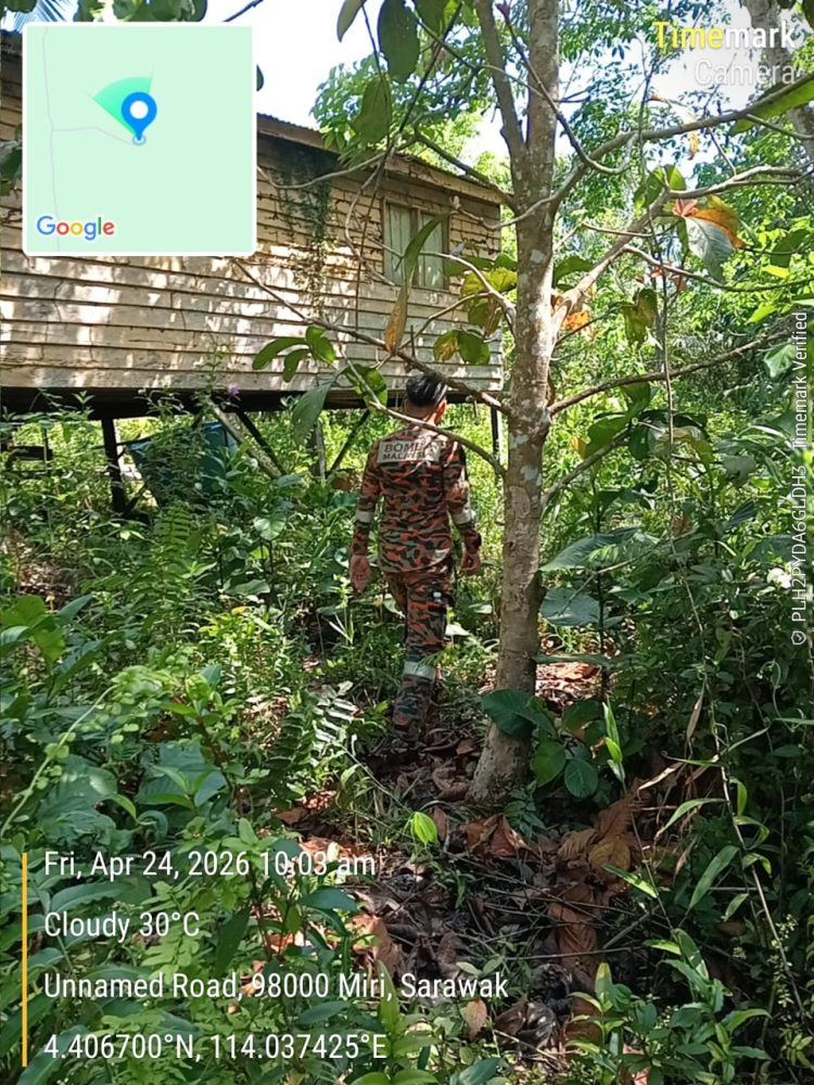 CARI..Pasukan bomba bersama agensi keselamatan menjalankan operasi mencari dan menyelamat (SAR) warga emas yang hilang di kawasan kebun berhampiran Petronas Bypass, Miri.