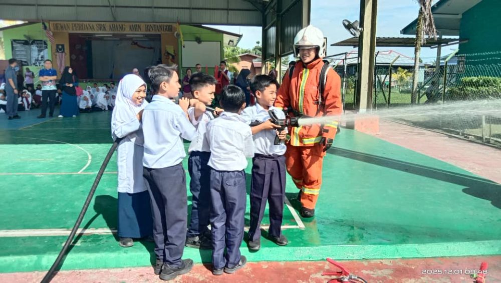 BINTANGOR: Warga Sekolah Kebangsaan (SK) Abang Amin diberikan pendedahan awal mengenai keselamatan kebakaran melalui program latihan dan ceramah yang dikendalikan oleh pihak Balai Bomba dan Penyelamat (BBP) Bintangor.
