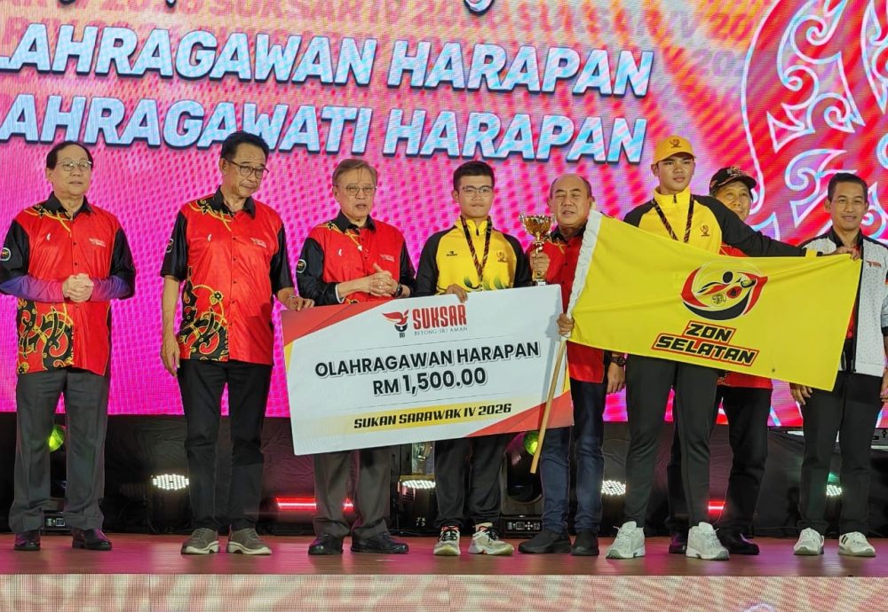Sementara itu, Zhen Xiang Kenny Lim dari Zon Selatan pula dinobatkan sebagai Olahragawan Harapan selepas mengungguli acara berbasikal lelaki dengan pencapaian cemerlang empat pingat emas sepanjang SUKSAR IV 2026.